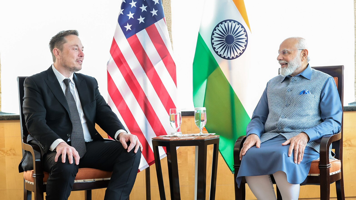 India's Prime Minister, Narendra Modi (right), meeting Elon Musk (left) in New York, June 20, 2023. Source: Prime Minister's Office (GODL-India) via Wikimedia Commons.