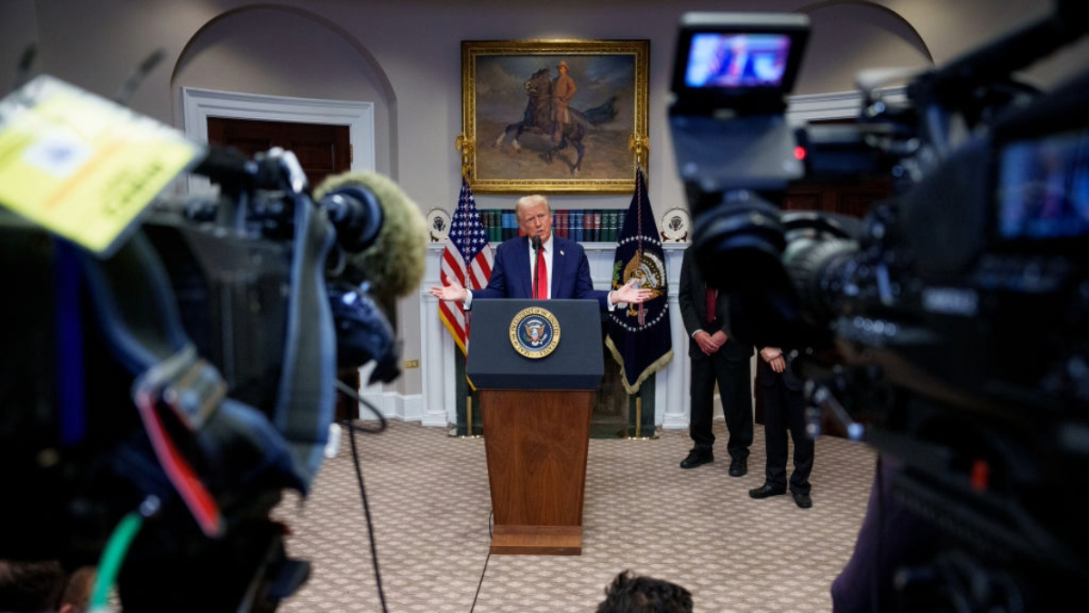 WASHINGTON, DC—JANUARY 21, 2025: US President Donald Trump speaks during a news conference in the Roosevelt Room of the White House. (Photo by Andrew Harnik/Getty Images)