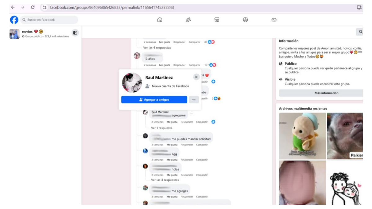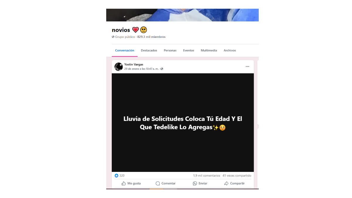 “Pic and age. Falling in love is allowed.” “Pic to see what your ex missed out on.” “Downpour of Friend Requests. Post your age and add whoever likes your post.” These are some of the challenges that are common in popular groups on Facebook, in which hundreds of boys, girls, and teenagers participate. They reply with their photos and ages, which range between 10 and 17. But they don’t know what or who is behind these “games.”