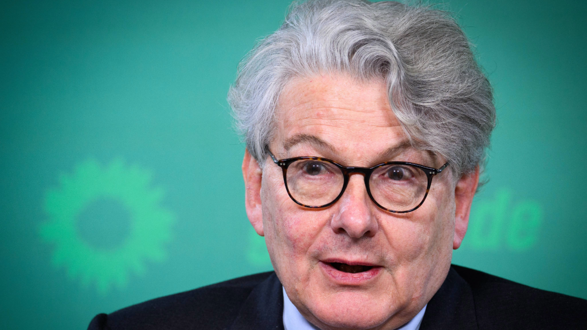 26 January 2026, Berlin: Thierry Breton, former EU Commissioner, speaks at a press conference after the Bündnis 90/Die Grünen federal executive committee meeting at the party's federal headquarters. Photo by: Bernd von Jutrczenka/picture-alliance/dpa/AP Images