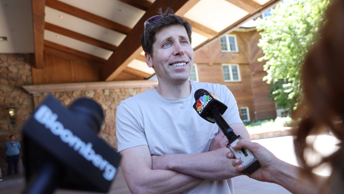 SUN VALLEY, IDAHO - JULY 11, 2023: Sam Altman, CEO of OpenAI, speaks to the media as he arrives at the Sun Valley Lodge for the Allen & Company Sun Valley Conference. (Photo by Kevin Dietsch/Getty Images)