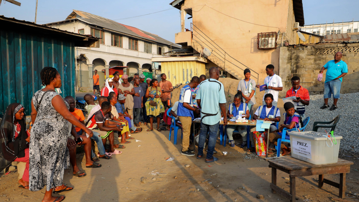 People line up before the opening of the polling stations to cast their ballot in the general elections in Accra, Ghana, Saturday, Dec. 7, 2024 (AP Photo/Misper Apawu)