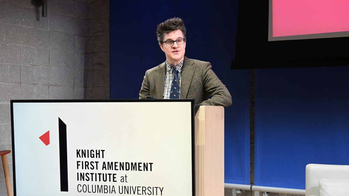 New York, New York—April 11, 2025: Erica Chenoweth delivers remarks at Columbia University at a conference hosted by the Knight First Amendment Institute. Photograph by Eileen M. Barroso.