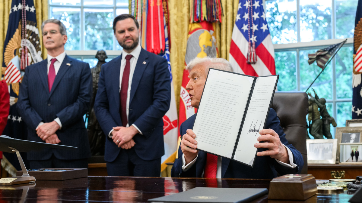President Donald Trump holds a signed executive order allowing a US deal for TikTok, Thursday, September 25, 2025, in the Oval Office. (Official White House photo by Joyce N. Boghosian)