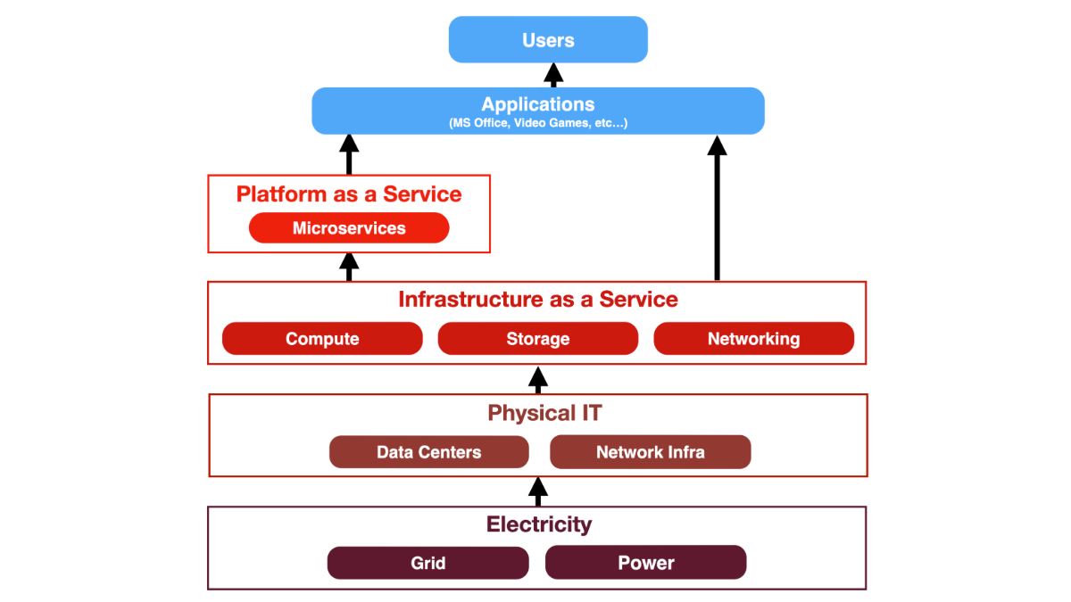 Cloud providers limit customer agency through two chokepoints: Infrastructure-as-a-Service (IaaS) and Platform-as-a-Service (PaaS). IaaS provides processing, storage, and networking — like a scaled-up laptop. PaaS is like an operating system, composed of useful microservices that make building applications easier.