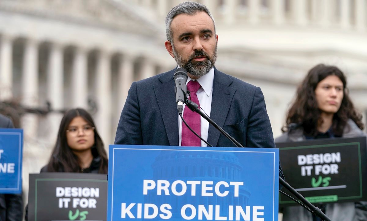 New Mexico Attorney General Raúl Torrez speaks during a rally to protect kids online on Capitol Hill in Washington, Wednesday, Jan. 31, 2024. (AP Photo/Jose Luis Magana)