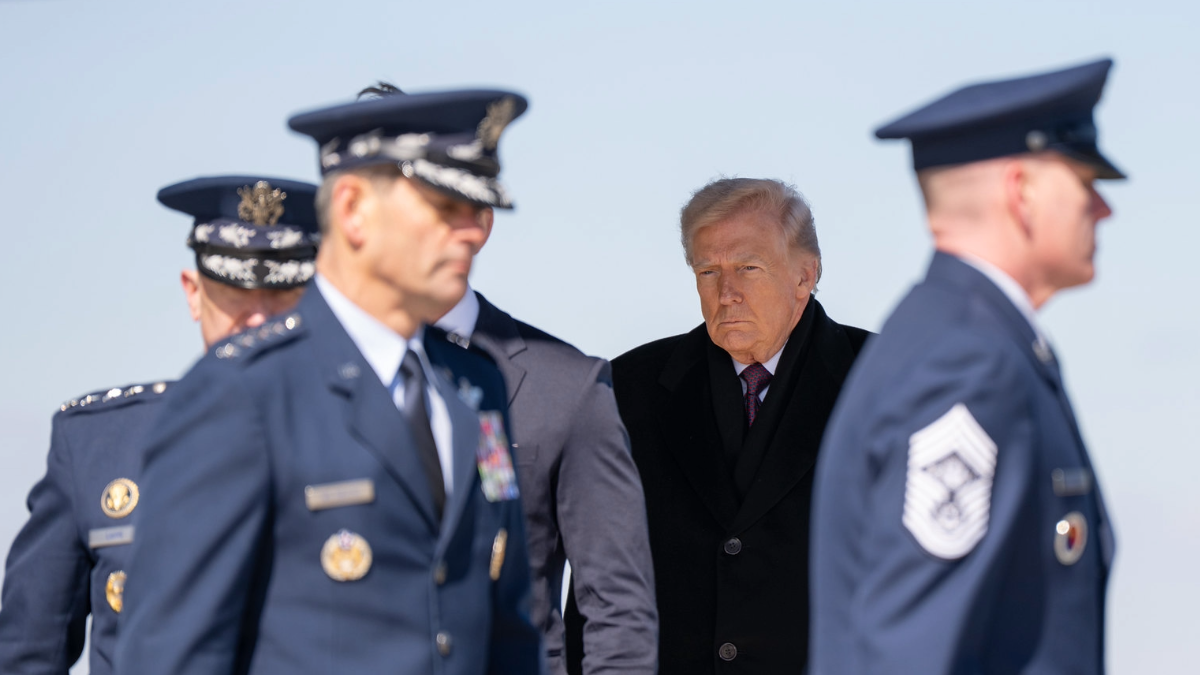 President Donald Trump attends the dignified transfer of six US servicemembers killed in the Middle East, Wednesday, March 18, 2026, at Dover Air Force Base, Delaware. (Official White House photo by Abe McNatt)