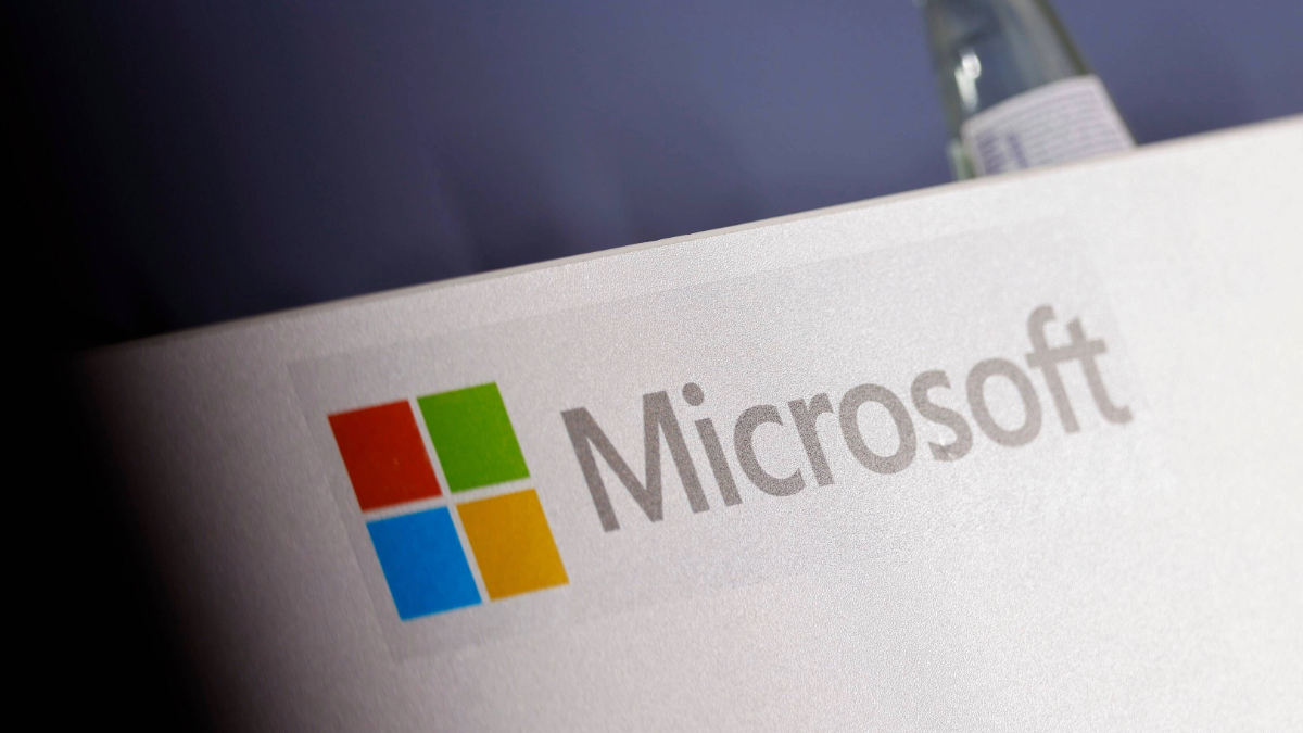 The Microsoft logo seen at the groundbreaking for the new Microsoft cloud data centers. Photo by: Christoph Hardt/picture-alliance/dpa/AP Images