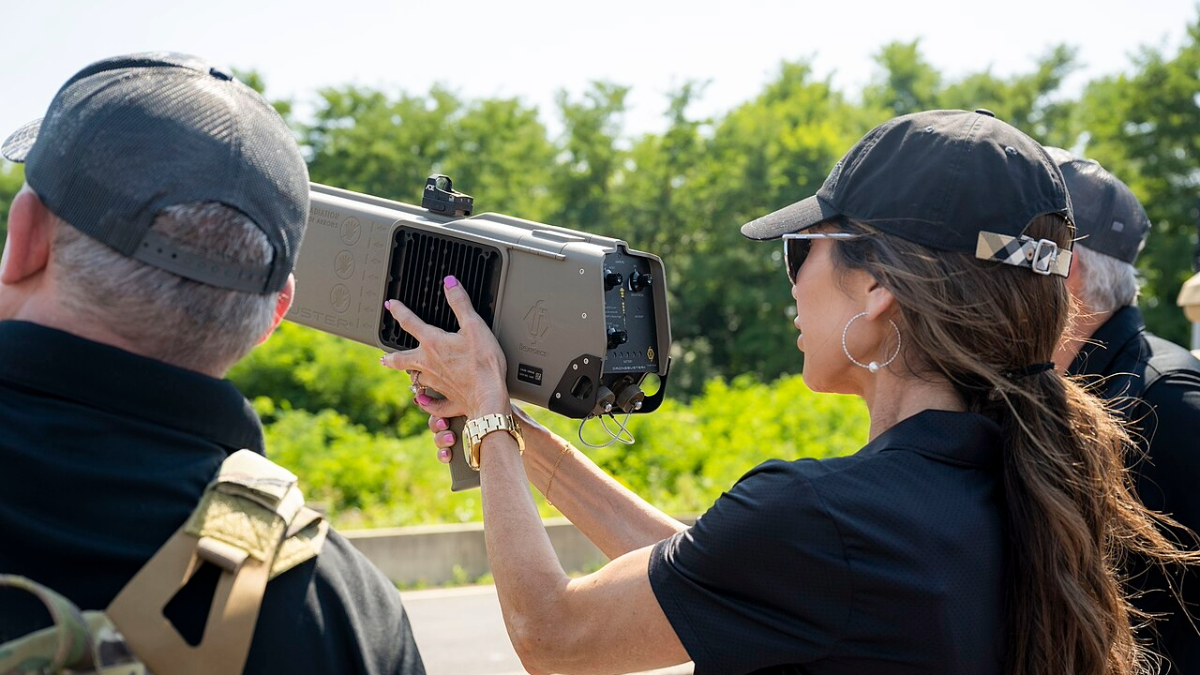 Department of Homeland Security (DHS) Secretary Kristi Noem visits the Custom’s and Border Patrol Unmanned Technology Operations Center for an Industry Day demonstration including DHS component heads and the CEOs of 22 vendors of counter-manned aircraft systems, in Summit Point, WV, on July 24, 2025. (DHS photo by Mikaela McGee)
