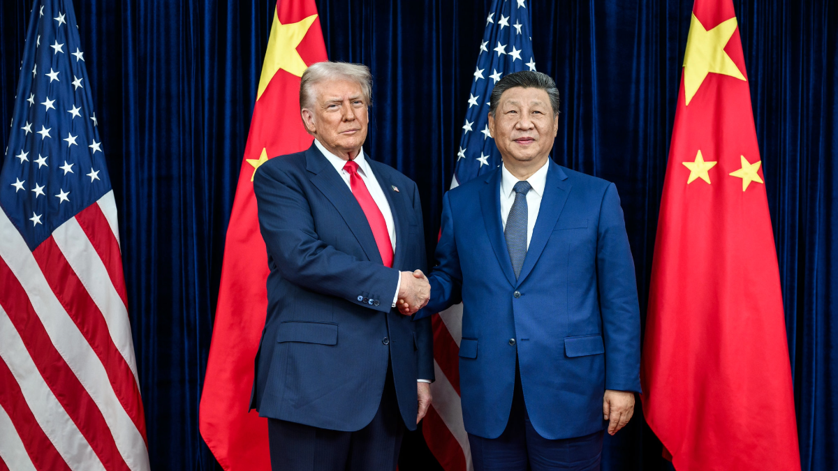 President Donald Trump greets Chinese President Xi Jinping before a bilateral meeting at the Gimhae International Airport terminal, Thursday, October 30, 2025, in Busan, South Korea. (Official White House photo by Daniel Torok)